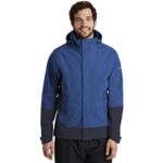 Two element-fighting WeatherEdge 5K/5K fabrics come together in this jacket for highly waterproof, breathable performance. Fully seam-sealed, this jacket also features an exclusive StormRepel ® durable water-repellent (DWR) coating for additional weather protection. Four-way stretch for easy mobility. Adjustable hood with locking drawcord, waterproof front Vislon ® front zippered pockets, adjustable tab cuffs with hook and loop closures, embroidery access pocket. Adjustable locking drawcord hem. Contrast WeatherEdge logo heat transfer on left sleeve. Contrast Eddie Bauer logo heat transfer on right hem. Made of 94/6 poly/spandex and 92/8 poly/spandex.